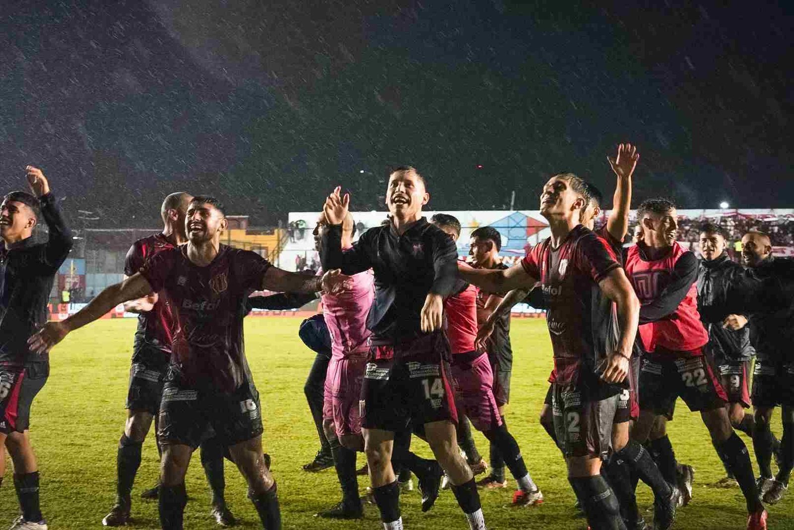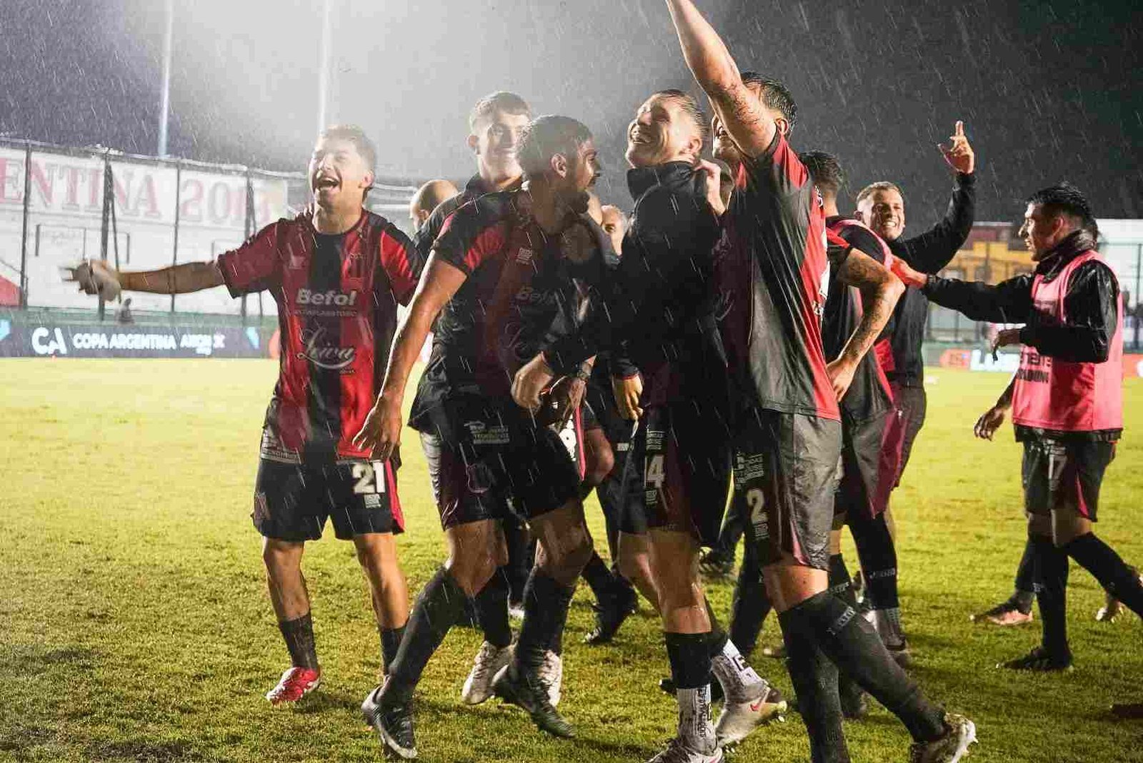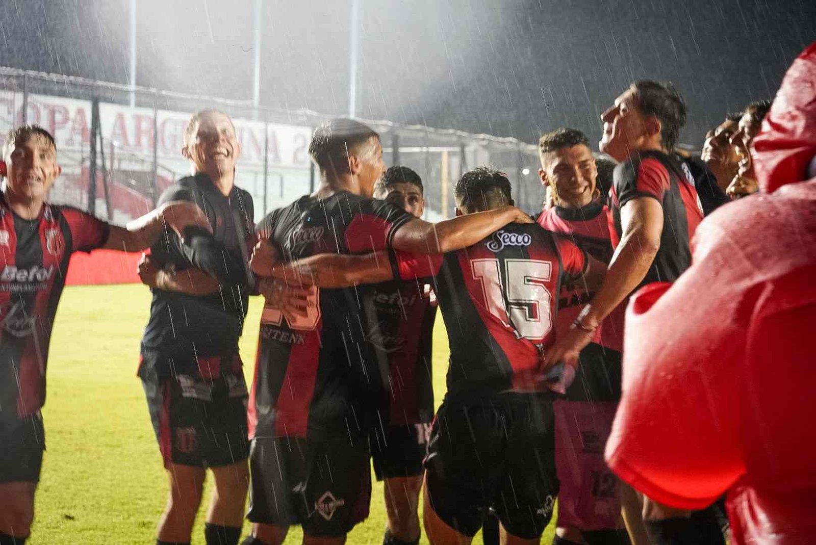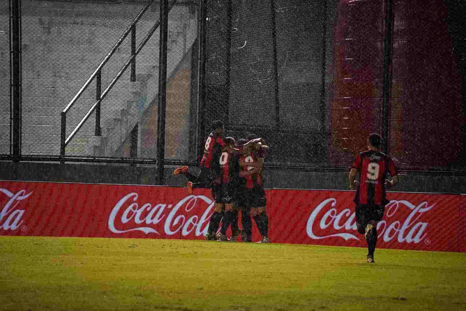 Una muestra de fe quizás, una prueba de valor, con el cielo viniéndose abajo, el aliento los saltos y cantos de la hinchada no solo no parecieran escampar, sino por el contrario, se hacían más fuertes, que habrán cruzado océanos durante los 90 minutos que duró el duelo. El telón gigante sirvió de refugio para el pueblo rojinegro.
