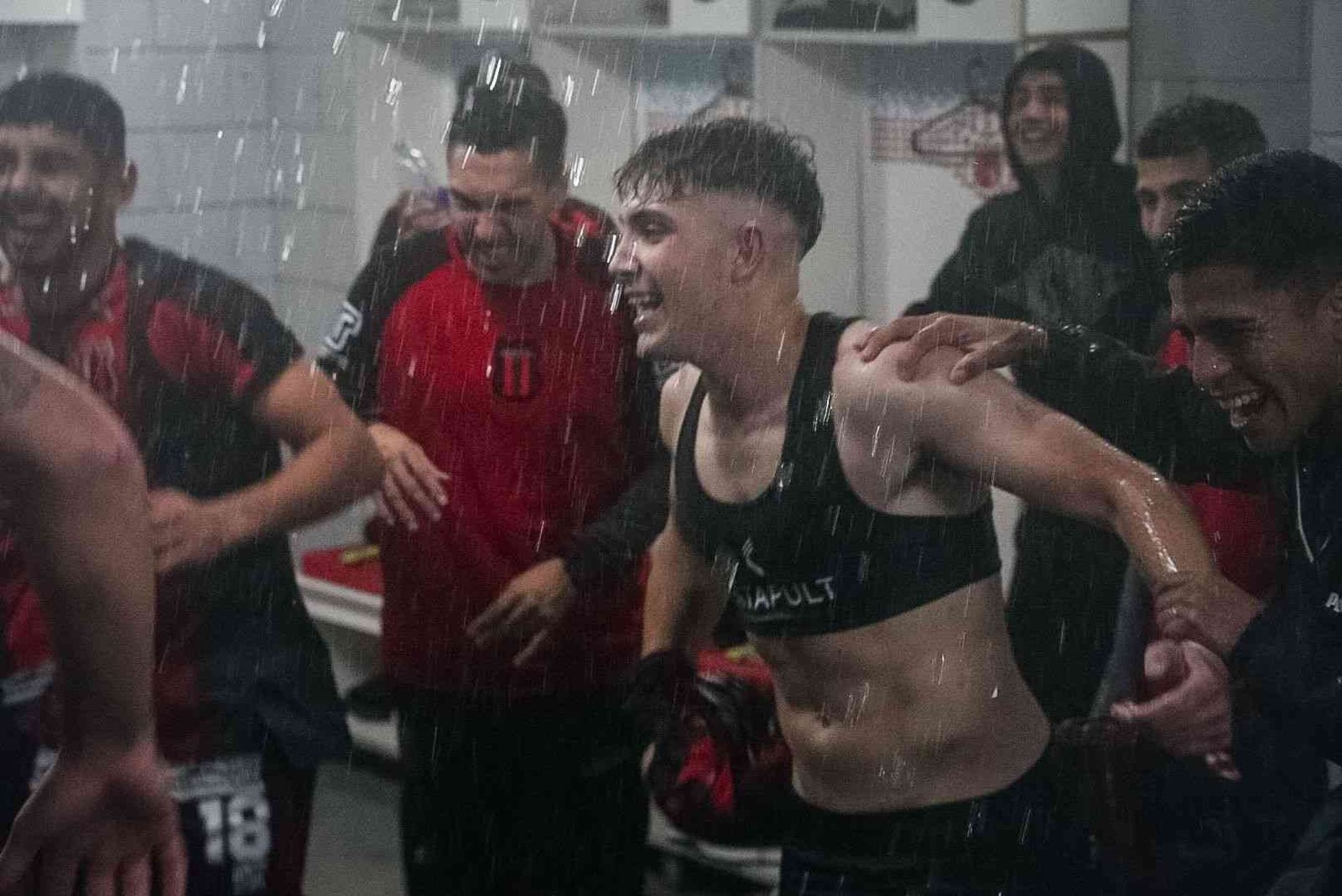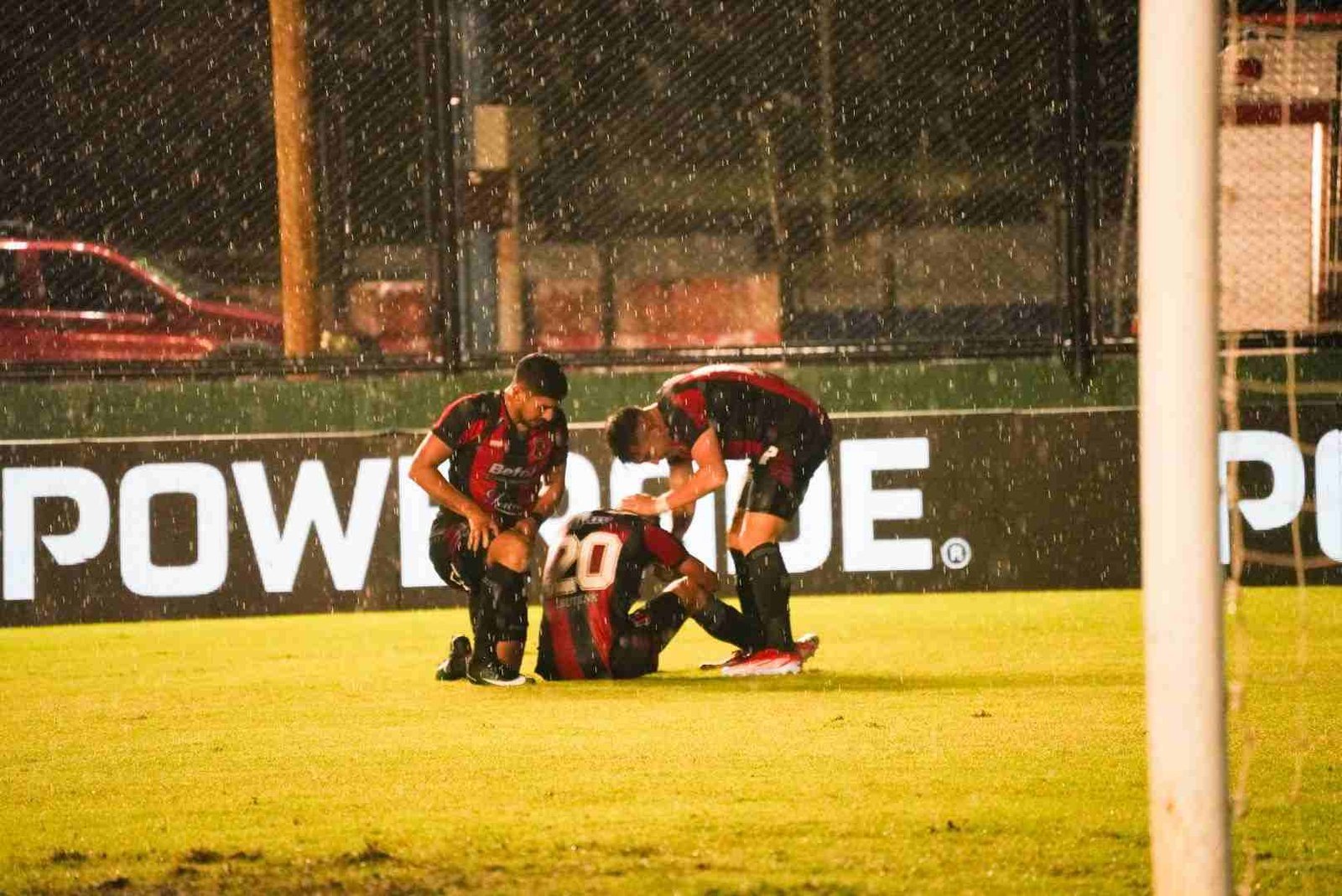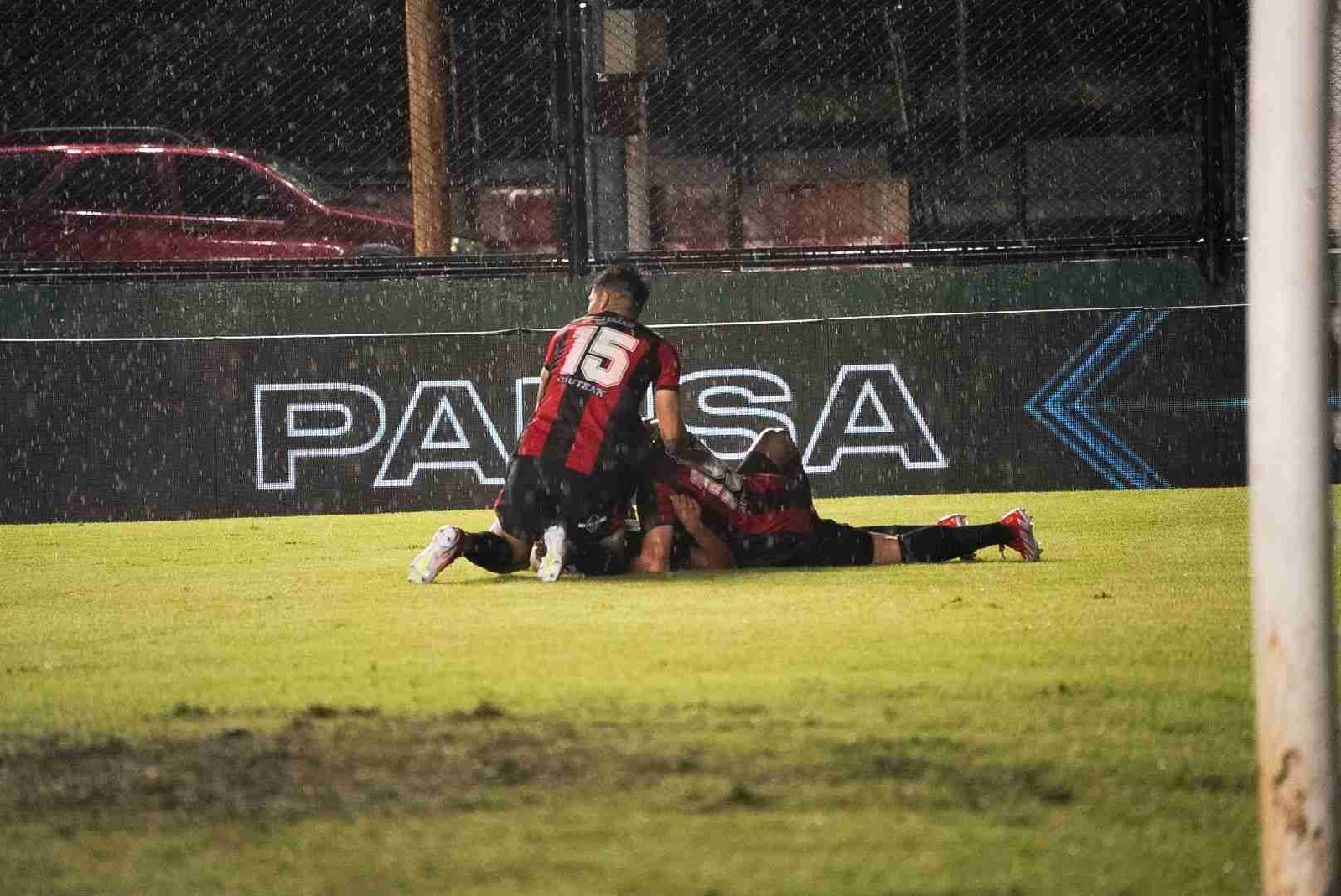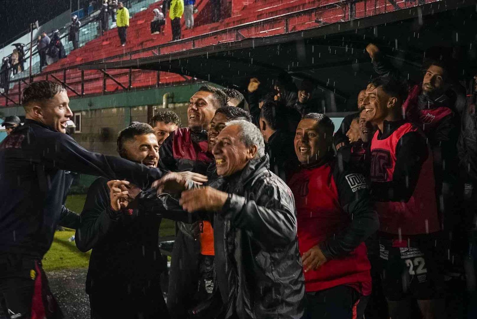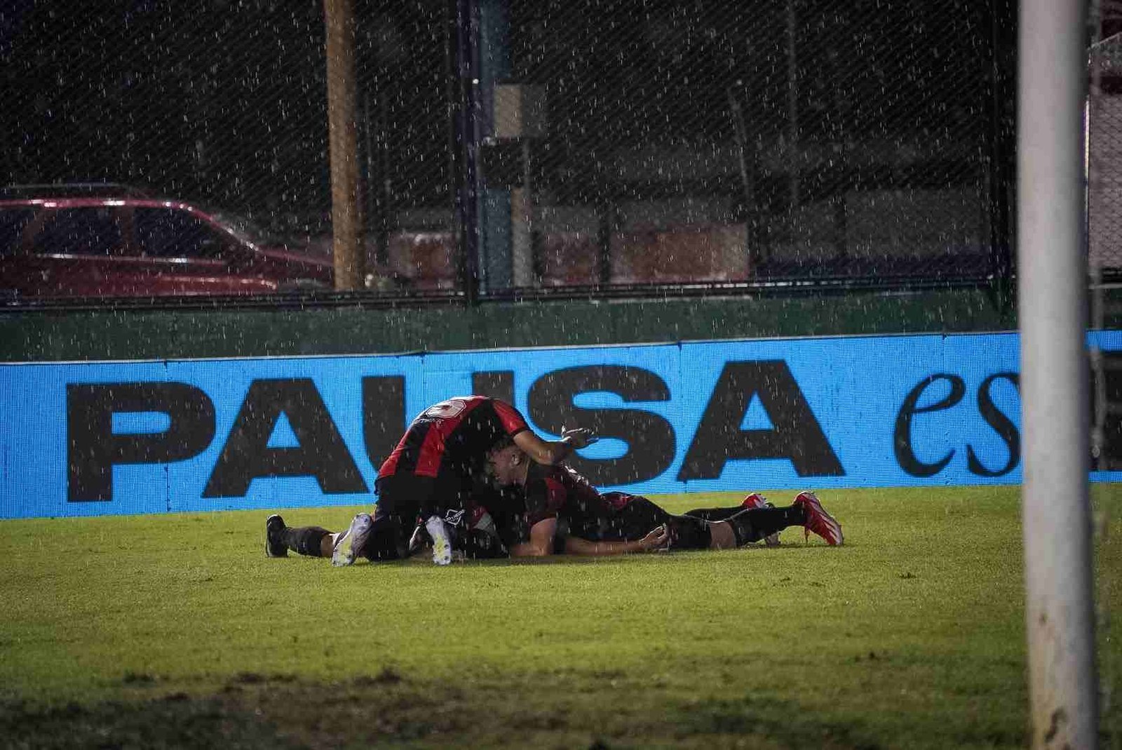 Una muestra de fe quizás, una prueba de valor, con el cielo viniéndose abajo, el aliento los saltos y cantos de la hinchada no solo no parecieran escampar, sino por el contrario, se hacían más fuertes, que habrán cruzado océanos durante los 90 minutos que duró el duelo. El telón gigante sirvió de refugio para el pueblo rojinegro.