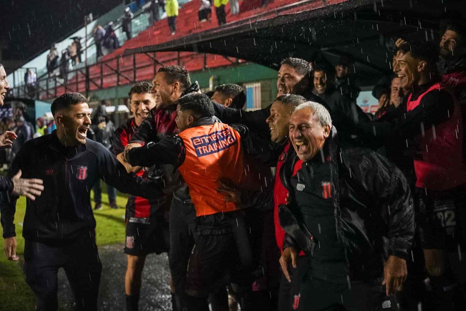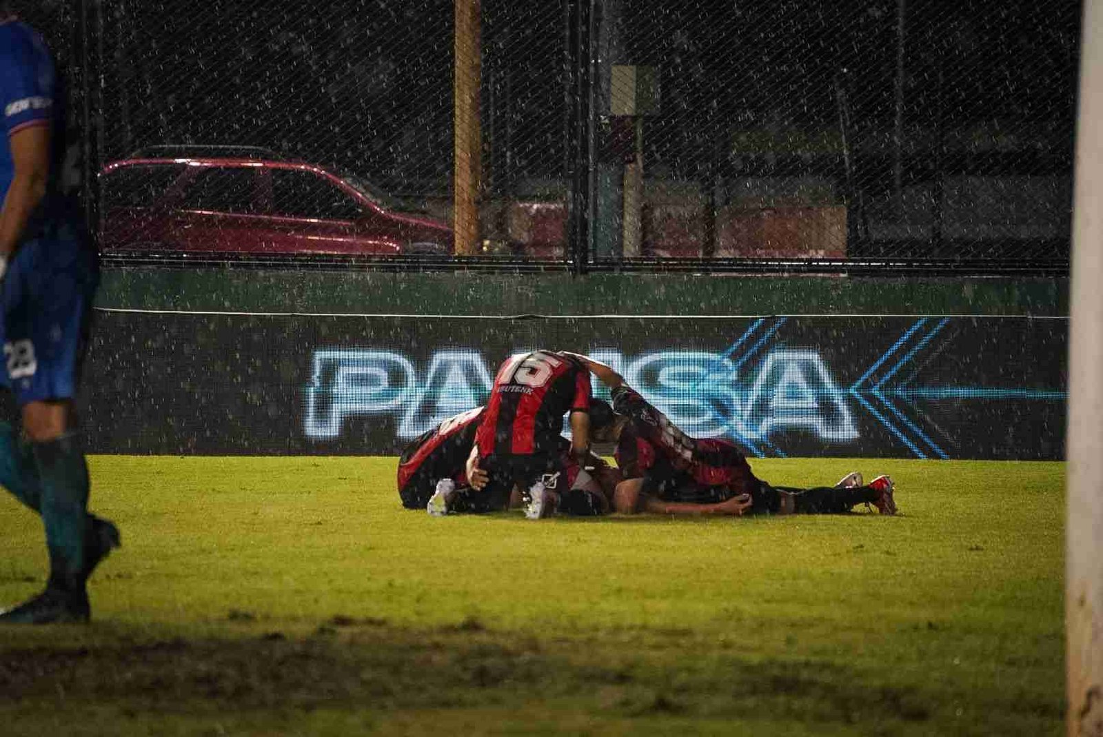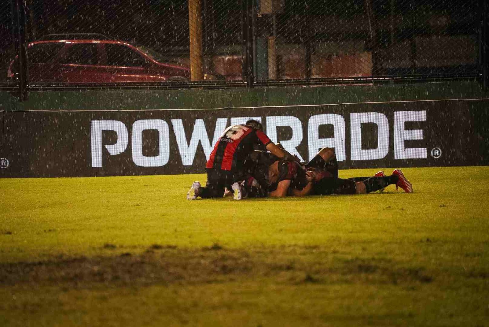 Una muestra de fe quizás, una prueba de valor, con el cielo viniéndose abajo, el aliento los saltos y cantos de la hinchada no solo no parecieran escampar, sino por el contrario, se hacían más fuertes, que habrán cruzado océanos durante los 90 minutos que duró el duelo. El telón gigante sirvió de refugio para el pueblo rojinegro.