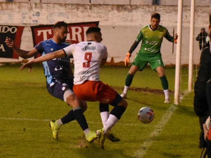 El encuentro no fue bien jugado, pero empezó electrizante. Una apilada del Topo Aguirre lo puso de frente al arquero, al que le definió a un costado, consumando un verdadero golazo.