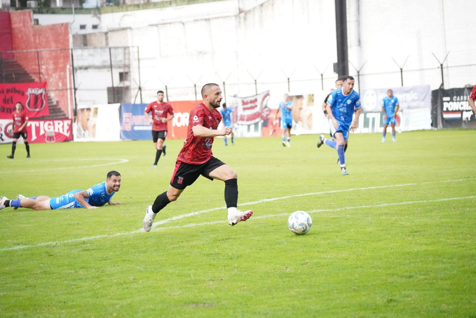Durante los primeros 15 minutos el Rojo y Negro se apropió de las acciones del cotejo triangulando, a un toque, formando, muy buenas sociedades. Los laterales titulares fueron Barbero y Massaccesi, éste último de gran partido subiendo mucho en ataque y defendiendo bien abajo.