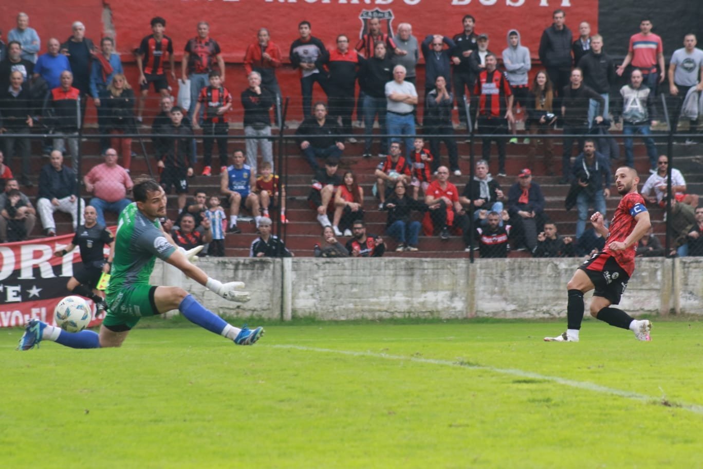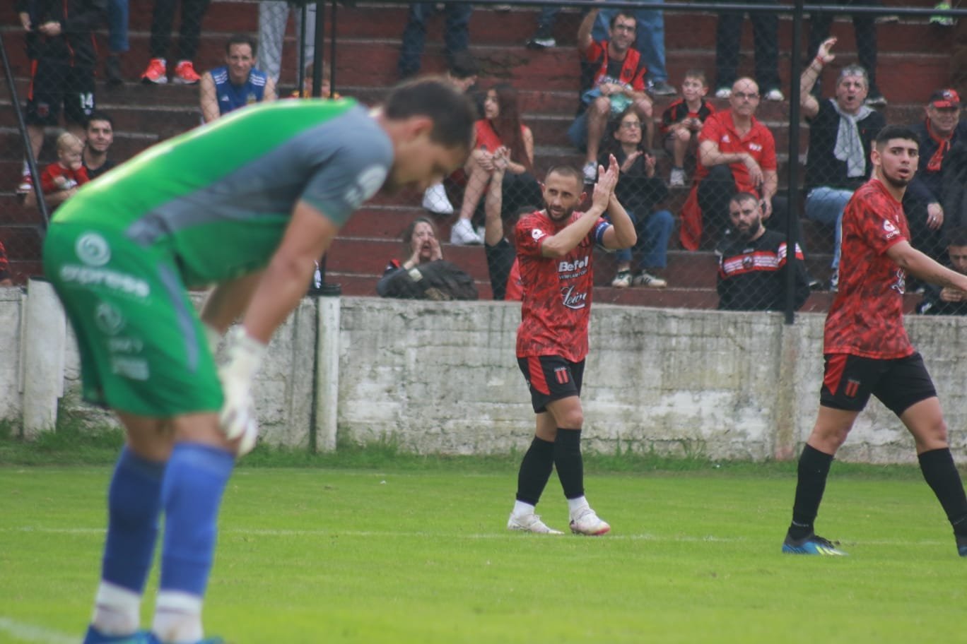 Recuperó Ignacio Gutiérrez en mitad de cancha, habilitó a Ezequiel Aguirre, que controló, se perfiló y definió para hacer delirar a la tribuna techada y a todo el Juan Pasquale.